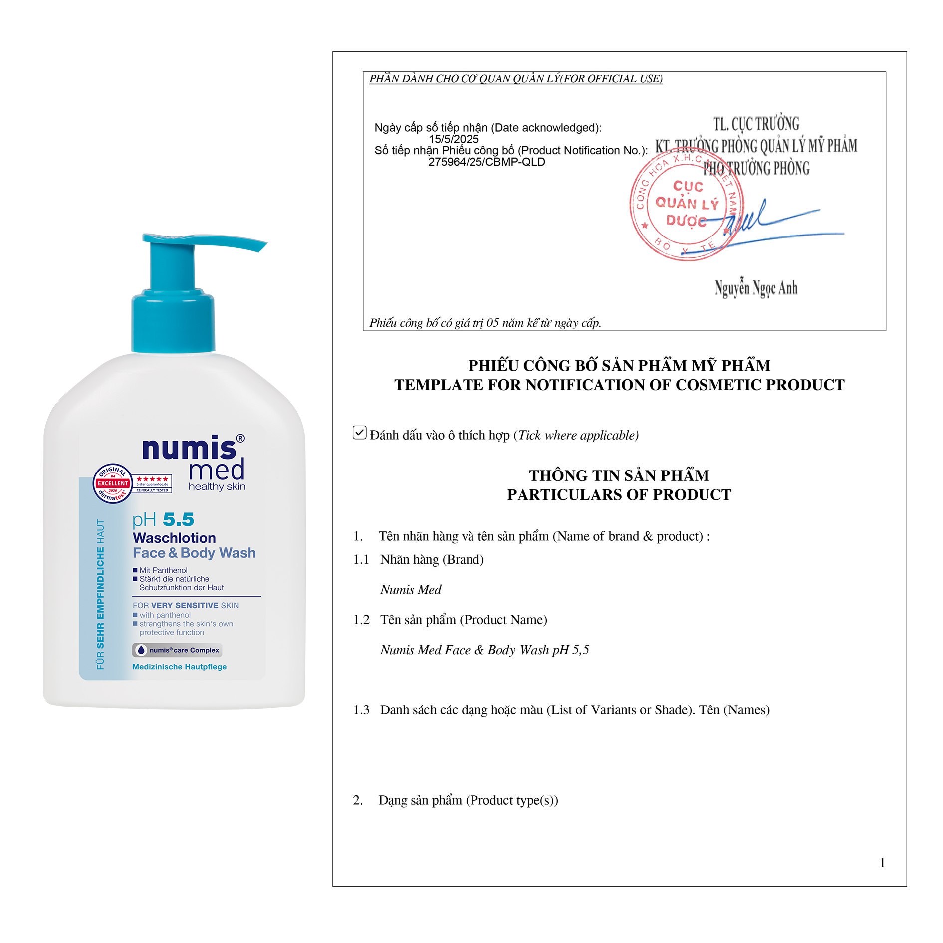 NUMIS MED FACE & BODY WASH pH 5.5 – Sữa Rửa Mặt & Tắm Toàn Thân pH 5.5