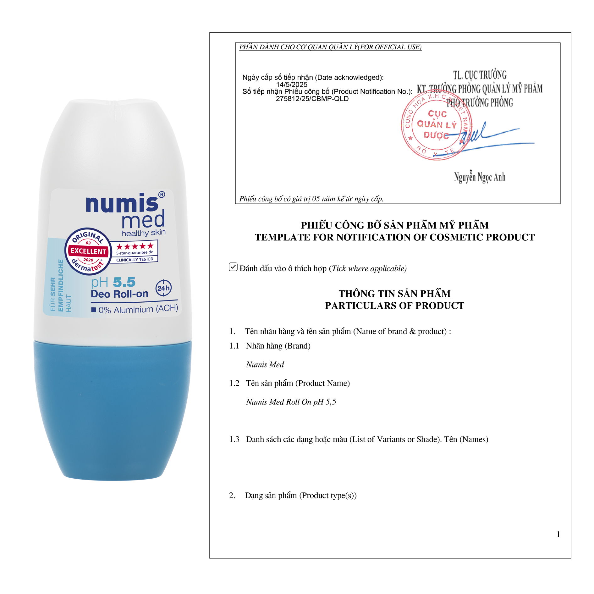 NUMIS MED ROLL-ON pH 5.5 – Lăn Khử Mùi Cho Da Nhạy Cảm pH 5.5