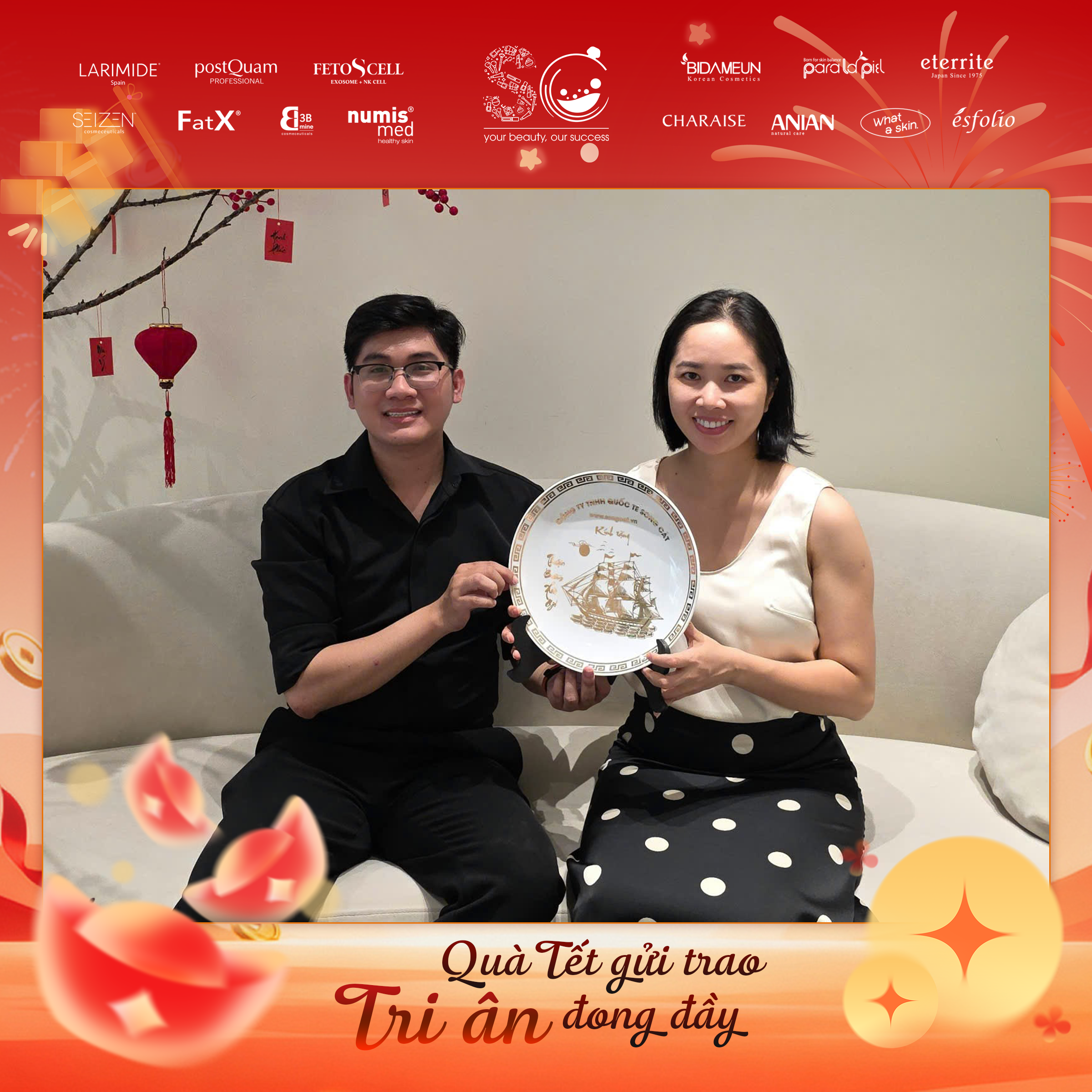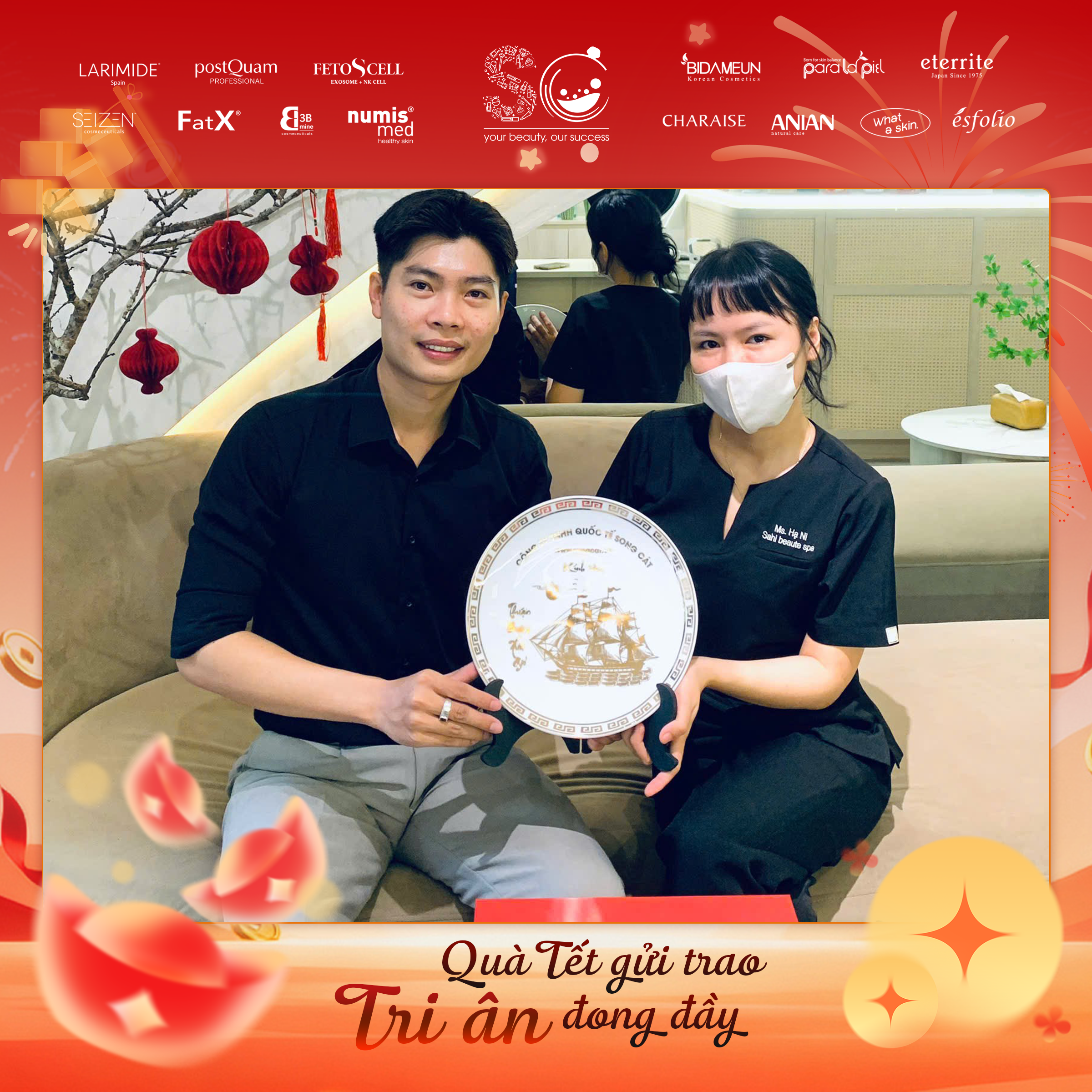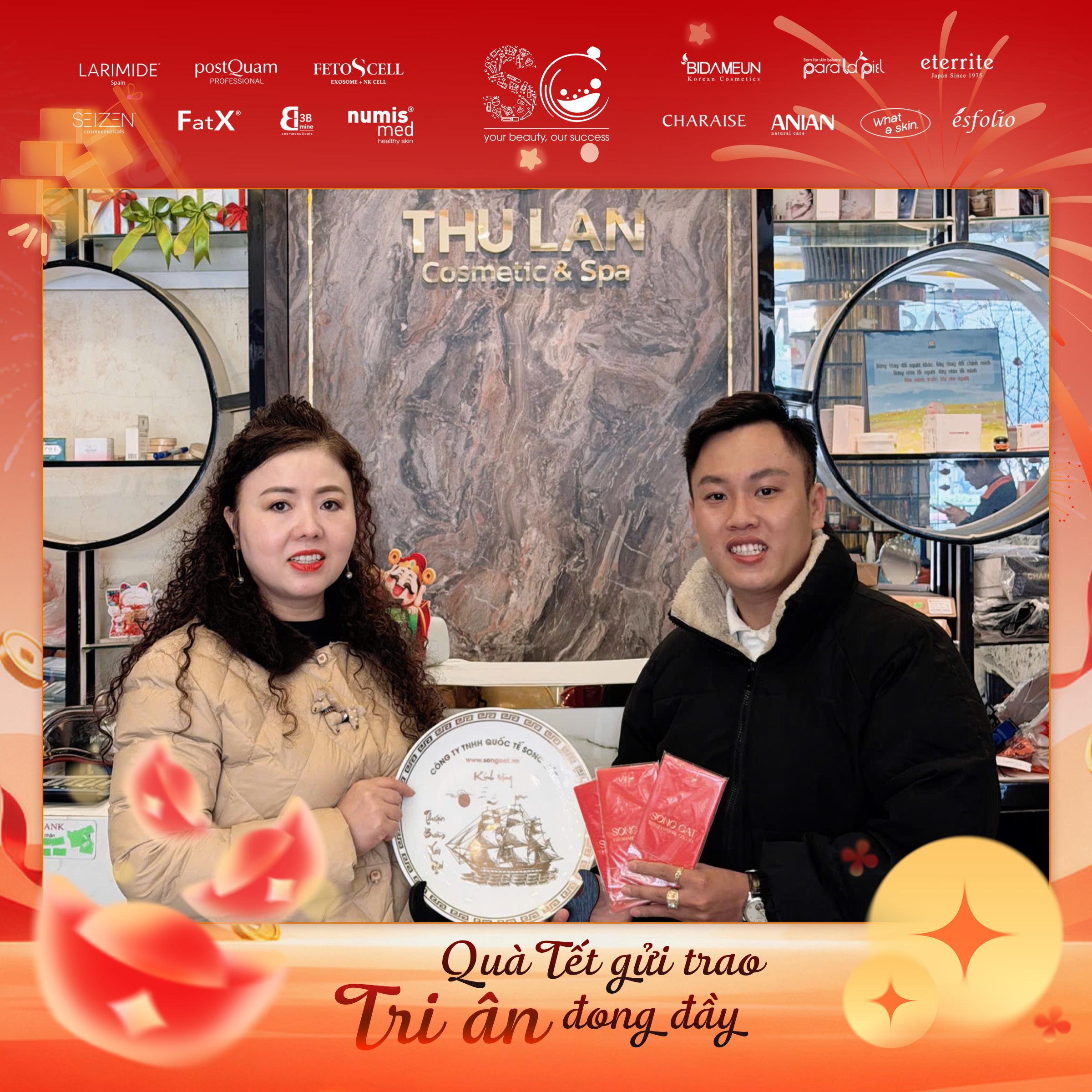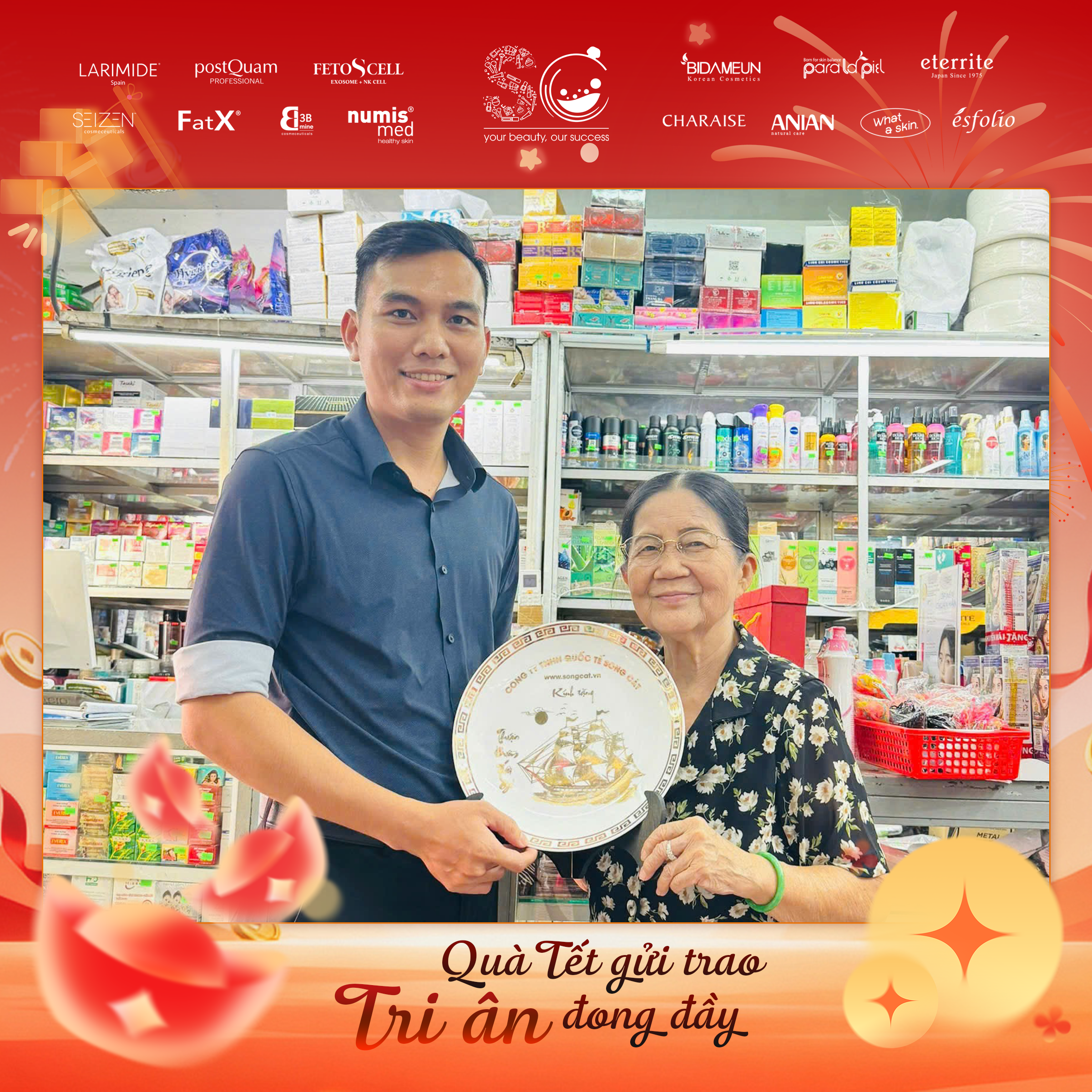 Có thể là hình ảnh về văn bản cho biết 'LARIMIDE postOuam จะชวงนน FETOSCELL SEIZEN FatX រ numis med *EIDAMEUN たこ paralapa eterrite CHARAISE ណល ANIAN 번로 ésfolio DUY HUNG dermaclinic Quà Tết gửi trao Tri ân đong đầy'